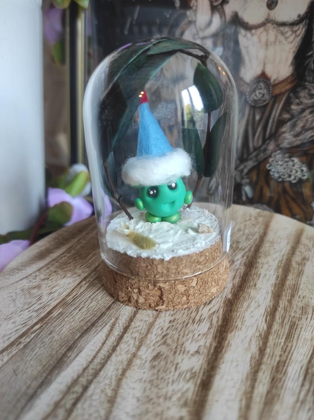 Présentée sous une cloche en verre d’environ 8,35 x 5,5 cm avec base en liège, chaque création repose sur un décor en matériaux synthétiques, stabilisés ou séchés, ne nécessitant aucun entretien.