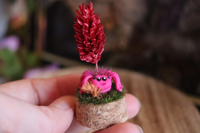 Ces êtres fantastiques, emblématiques de l’univers C.Ama.Arts, sont modelés à la main en pâte polymère artisanale.