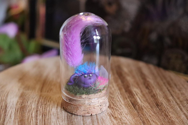 Présentés sous une cloche en verre de 3x5 cm avec base en liège, ils apportent une touche féérique et colorée à votre décoration.