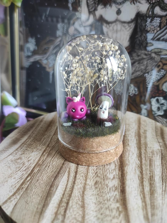 👉 Le socle en verre n’est pas collé, ce qui vous permet d’exposer la création avec ou sans sa cloche.
