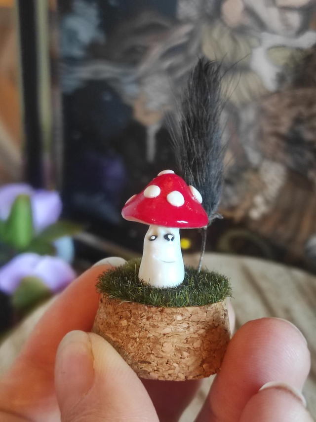 Ces êtres fantastiques, inspirés des champignons, sont entièrement modelés à la main en pâte polymère artisanale.