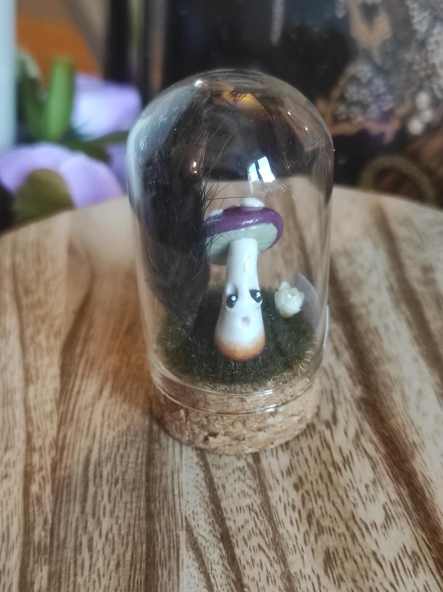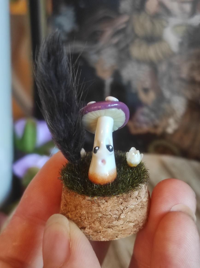 Ces êtres fantastiques, inspirés des champignons, sont entièrement modelés à la main en pâte polymère artisanale.