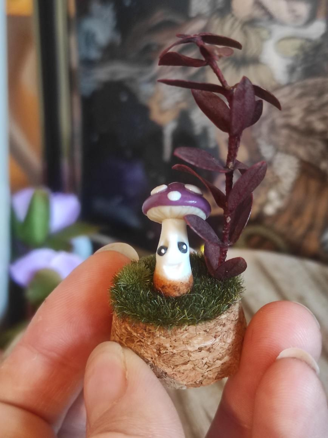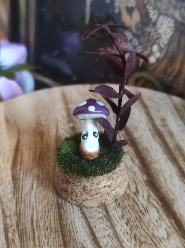 Ces êtres fantastiques, inspirés des champignons, sont entièrement modelés à la main en pâte polymère artisanale.